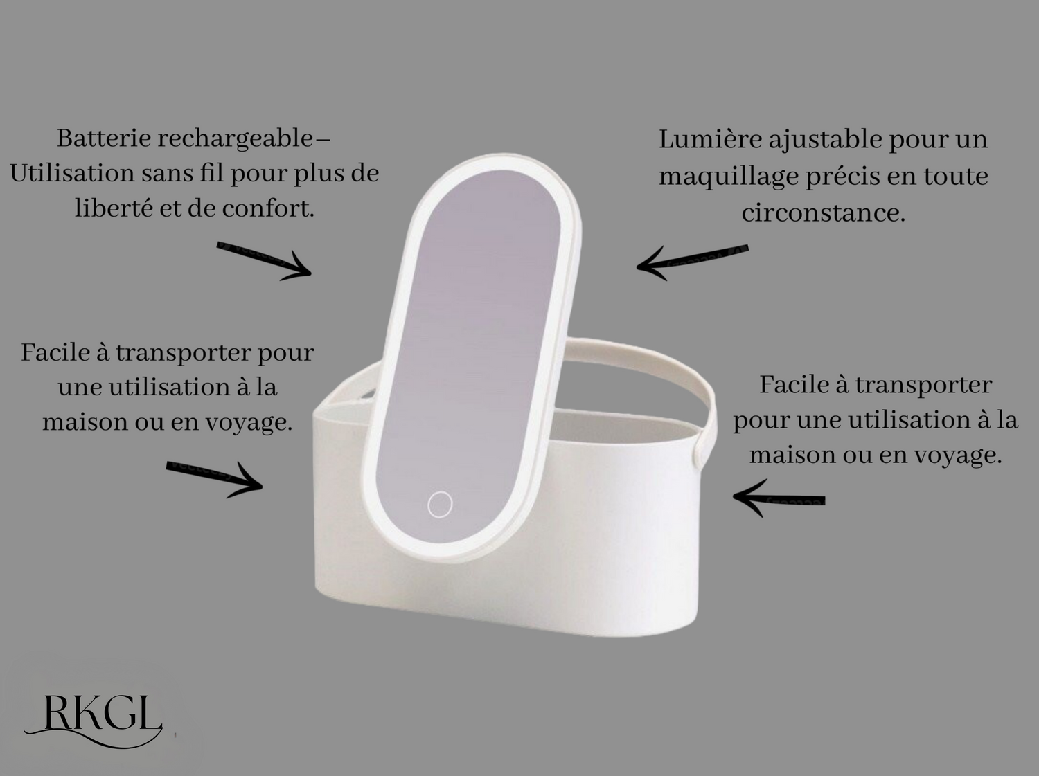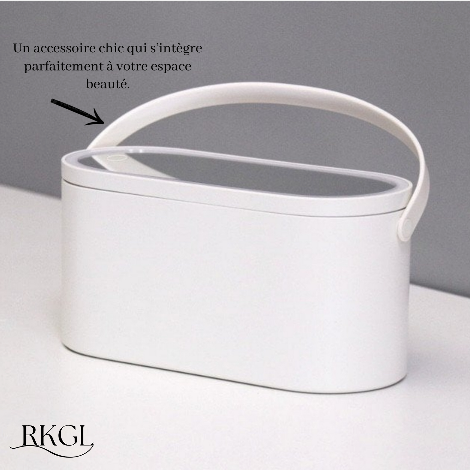 Transportez et organisez vos cosmétiques avec cette boîte portable dotée d’un miroir LED tactile réglable. Compacte et élégante, elle assure un maquillage précis où que vous soyez !